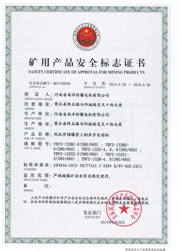 YBF2系列風機用隔爆型三相異步電動機是為驅動煤礦井下非采掘工作面風機用動力設備。防爆標志為EXDI,適用于煤礦井下非采掘面具有甲烷可燃性氣體或煤礦與空氣形成爆炸性氣體環境的場所。