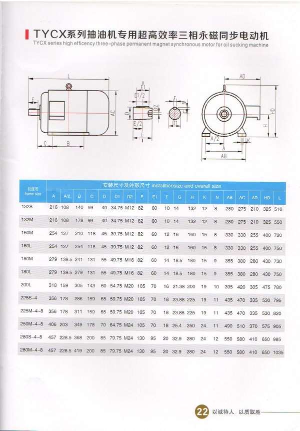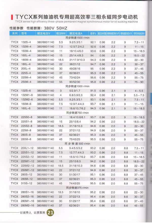 TYCX系列抽油機(jī)高效率三相永磁同步電動(dòng)機(jī)參數(shù)